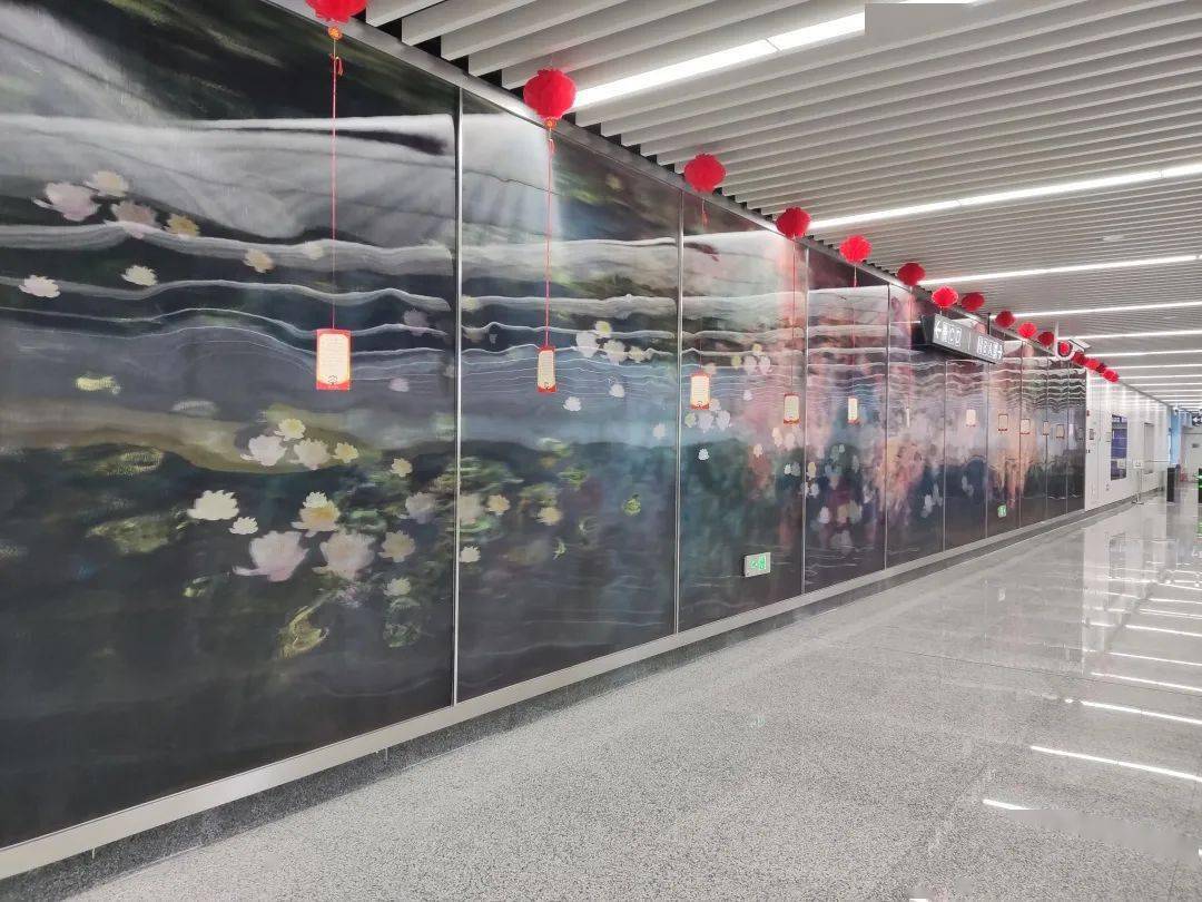 站廳東側的“清氣滿乾坤”蓮花互動墻由光柵板打造,路過的行人會看到爭相盛開、姿態各異的蓮花,以蓮寓廉。